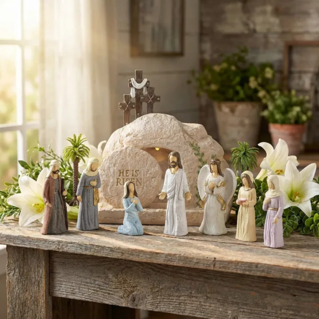 Cenário Completo da Ressurreição de Jesus com Luz LED ✝️ Decoração Cristã