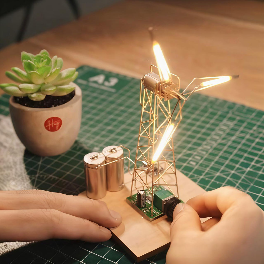 Cada conjunto inclui peças detalhadas de alta qualidade (fio de latão, motor CC silencioso, lâmpadas LED Edison)
