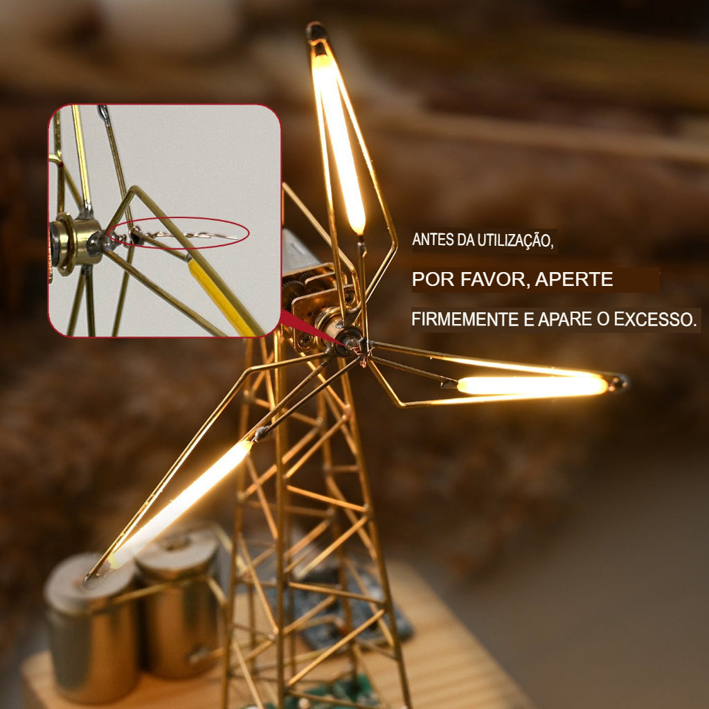 Esta luminária de moinho de vento retrô industrial, não é apenas uma luz — é uma peça artesanal que traz tranquilidade